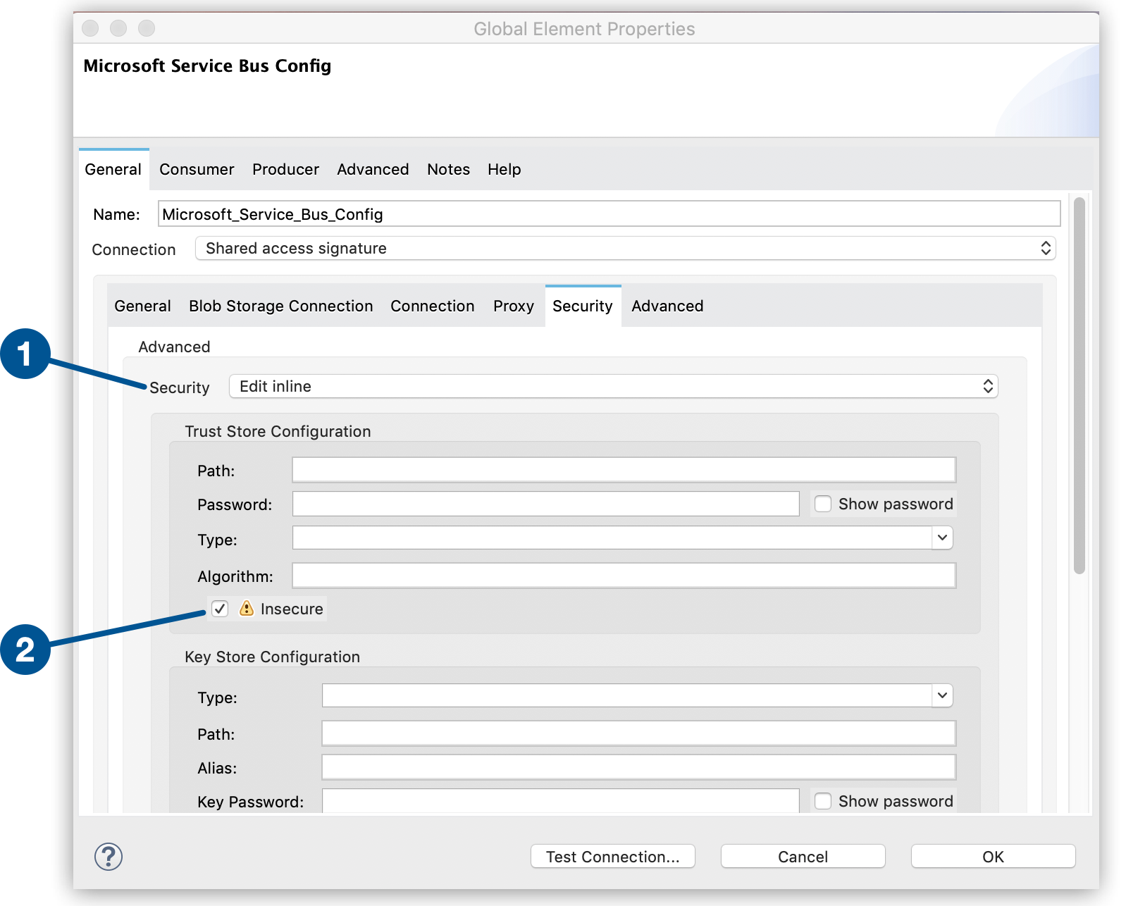 接続性テストの実行中または Mule アプリケーションの開始中に次のいずれかのエラーが発生した場合、トラストストアを非セキュアモードで設定する必要があります。